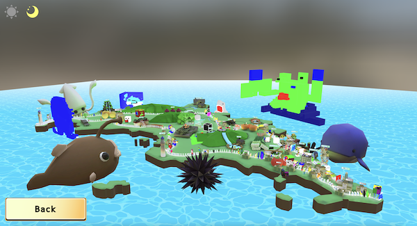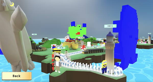 当初想定していた、ドミノの通り道以外にも好きなところに3Dモデルを配置した学生が多く、イベント会期後のプロジェクトはにぎやかになりました。